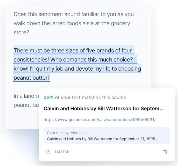 When research notes get messy, the plagiarism detector helps catch passages that may need citation by scanning 16 billion ProQuest™-licensed web pages and articles.